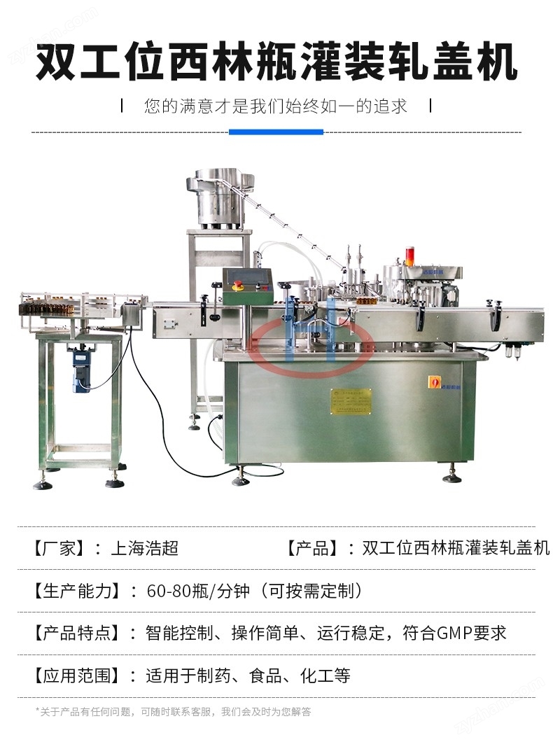 上海浩超雙工位西林瓶灌裝軋蓋機專為醫藥行業設計,適用于小容量注射劑、口服液等產品的精密包裝。其雙工位設計可提升生產效率,同時確保無菌操作和密封可靠性。本文將詳細解析其工藝流程,幫助讀者全面理解這一先進設備的運作機制。